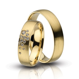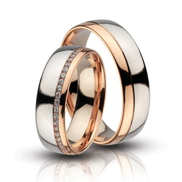 Gyűrűink belső felülete enyhén domború kialakítású, mely rendkívül kényelmes viseletet biztosít tulajdonosuk számára. Modelljeink az arany mindhárom színárnyalatában (sárga-, fehér- és rosé) megrendelhetőek. Mesterműveinket a legjobb minőségű, válogatott gyémántok tündöklése teszi teljessé, melyek ötvöseink aprólékos és odafigyelő kézi munkáját dicsérik.